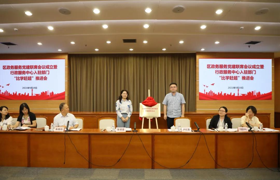 9月10日下午,普陀區政務服務黨建聯席會議成立儀式暨行政服務中心入駐部門“比學趕超”推進會舉行。