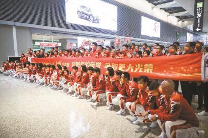 第十四屆全國運動會上海市代表團出發前在虹橋機場合影。