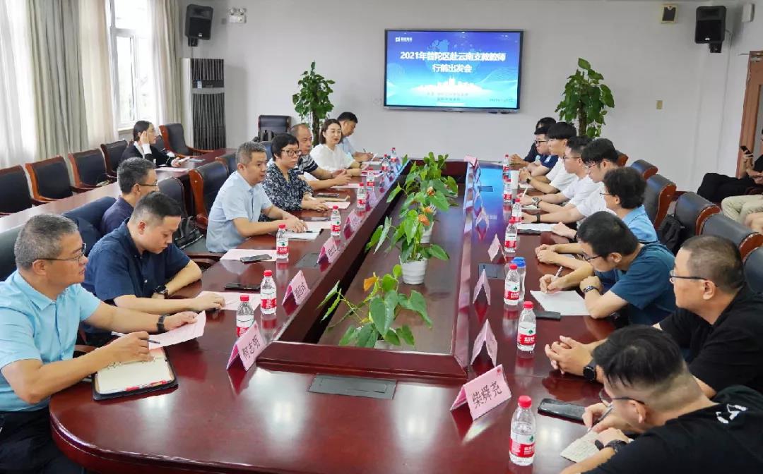 當天上午,9位普陀區選派的云南重點幫扶地區支教教師懷著激動的心情,與普陀區合作交流辦、普陀區教育局,昆明市鄉村振興局,昆明市尋甸縣、祿勸縣、東川區等各方負責人共聚一堂,就即將開展的支教工作進行深入交流。與會領導還為支教教師發放了慰問品。