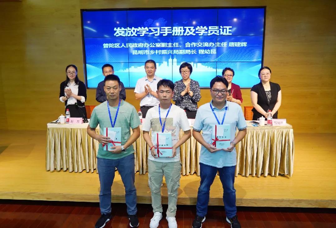 在云南昆明對口幫扶地區教育系統專業技術人員及管理干部培訓班開班儀式現場,與會領導為學員們頒發學習手冊和學員證,并介紹培訓具體計劃和課程內容。