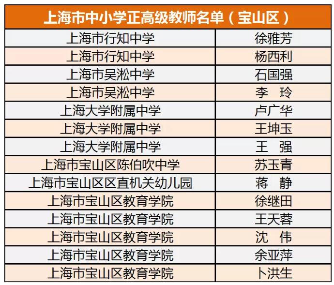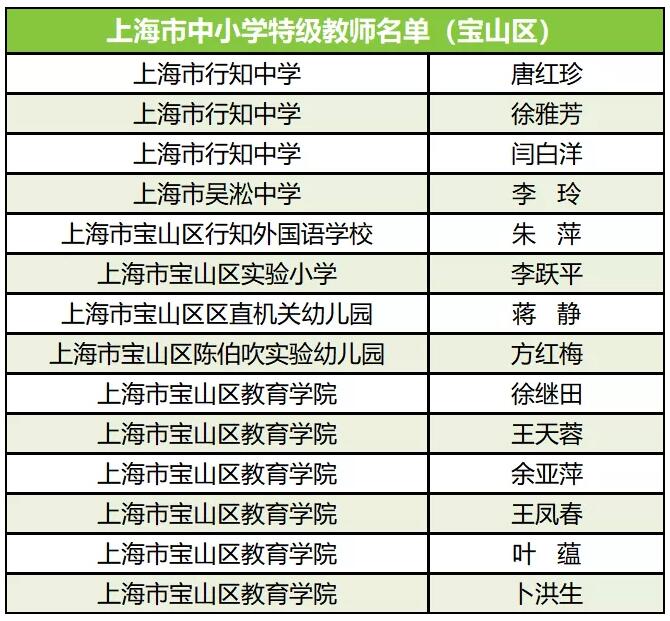 至此,寶山區共有在職特級校長11名、特級教師14名、正高級教師14名。