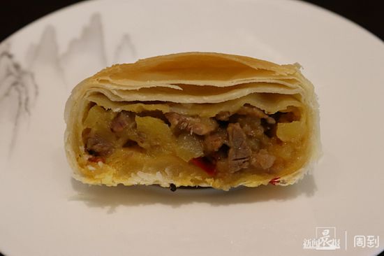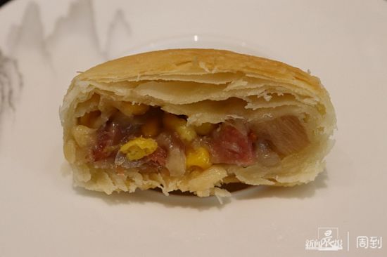 這款手工月餅除了有傳統的鮮肉口味,今年還有牛干巴咖喱味、云腿玉米味兩種新口味,加入了云南尋甸牛干巴、云腿食材。
