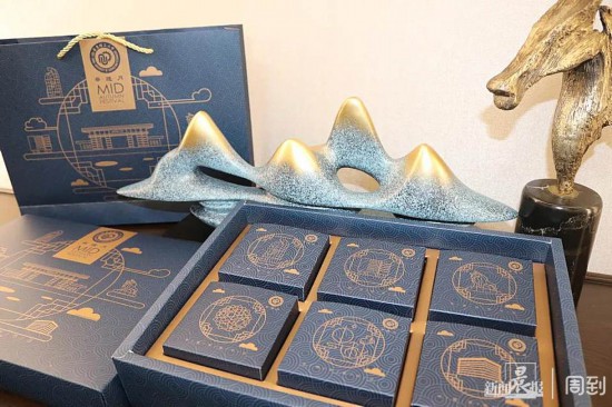 外包裝繼續沿用金絲藍底的整體設計風格,搭配華理元素和中秋意象,看起來既別致典雅,又沉穩大氣。