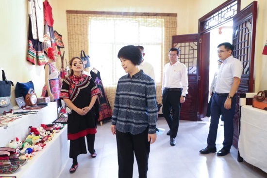 在滇期間,虹口區黨政代表團來到丘北縣仙人洞村,考察仙人洞村上海虹口幫扶消費協作項目、仙人洞村上海洗霸幫扶刺繡扶貧車間展銷點項目,并走訪看望脫貧戶。