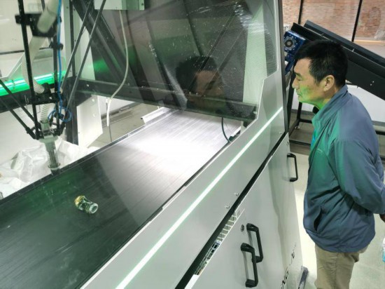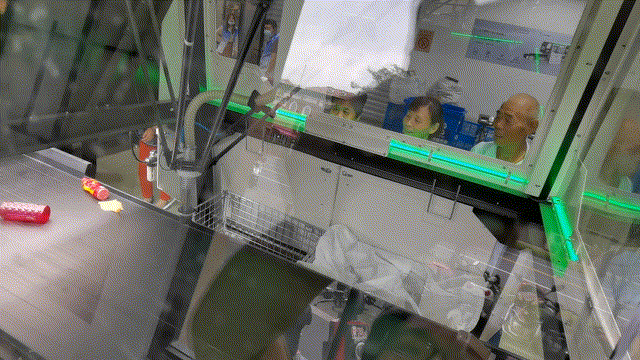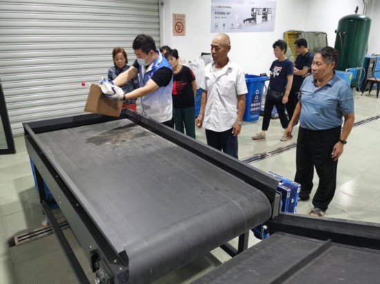 今年5月起,張月玲還驚訝地發現,文創中心里多了一套“流水線”——把塑料瓶、紙板、易拉罐等放到傳送帶上,它會自動分類并扔到對應種類的收集框內,從辨認到完成歸類,平均每個物體僅需一兩秒。