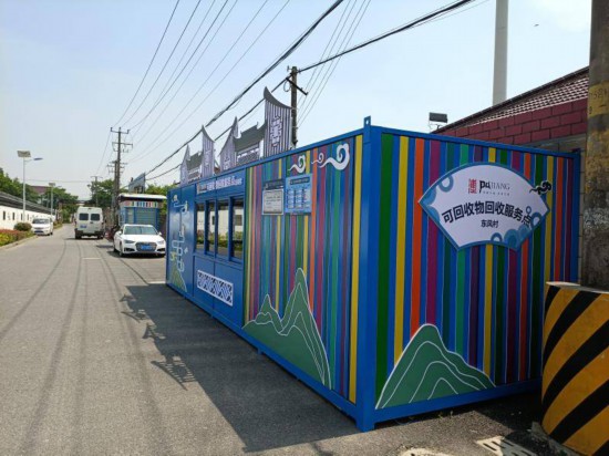 在上海,“好玩”的生活垃圾場站不只是嘉定區獨有,把視線投向東南方,閔行區浦江鎮東風村的老年活動室外,最近多出一個五彩斑斕的集裝箱,專門收集村民家的可回收物。