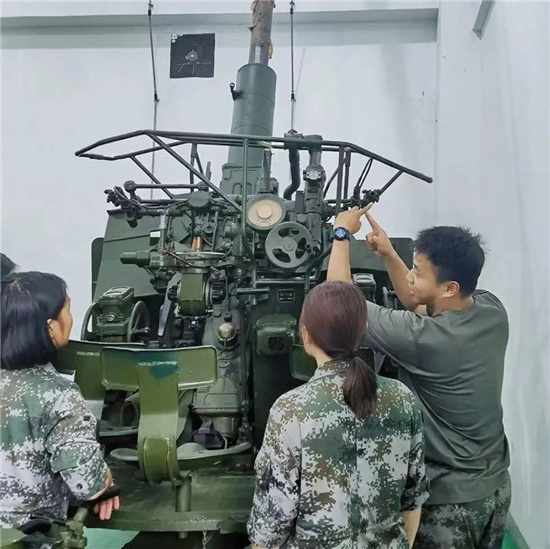 集訓隊的老連長,在炮庫講解炮車的相關知識理論,讓大家對這些設備有直觀的了解。