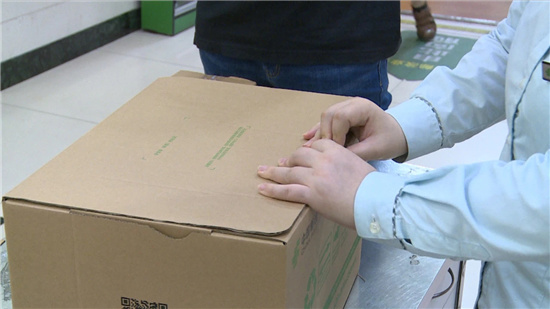 “不用刀劃開包裝,對老人來說也很安全!弊罱K,蔡先生選擇了這款新型包裝箱。陸萍介紹,全覆蓋無膠帶包裝箱由中國郵政自行設計生產,已經使用了一年多,“一是可以免去膠帶的使用,二是這種包裝可以多次循環利用,真正實現減量化、可循環的綠色理念!