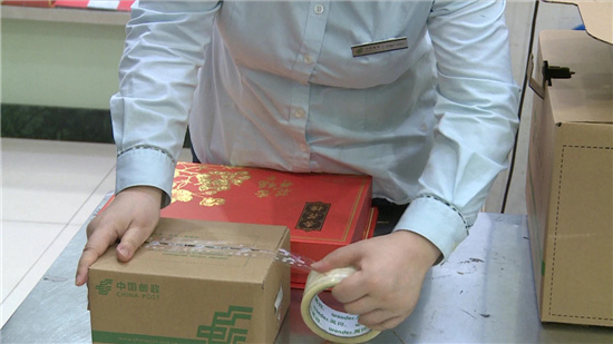 9月15日下午,在城中路郵政支局,市民蔡先生買了幾盒月餅,打算趕在中秋節前寄回老家。