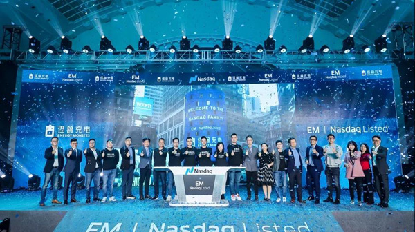 2021年4月1日,怪獸充電在美國納斯達克交易所掛牌上市,公司證券代碼為“EM”,開盤價為10美元,較發行價8.5美元上漲17.64%。