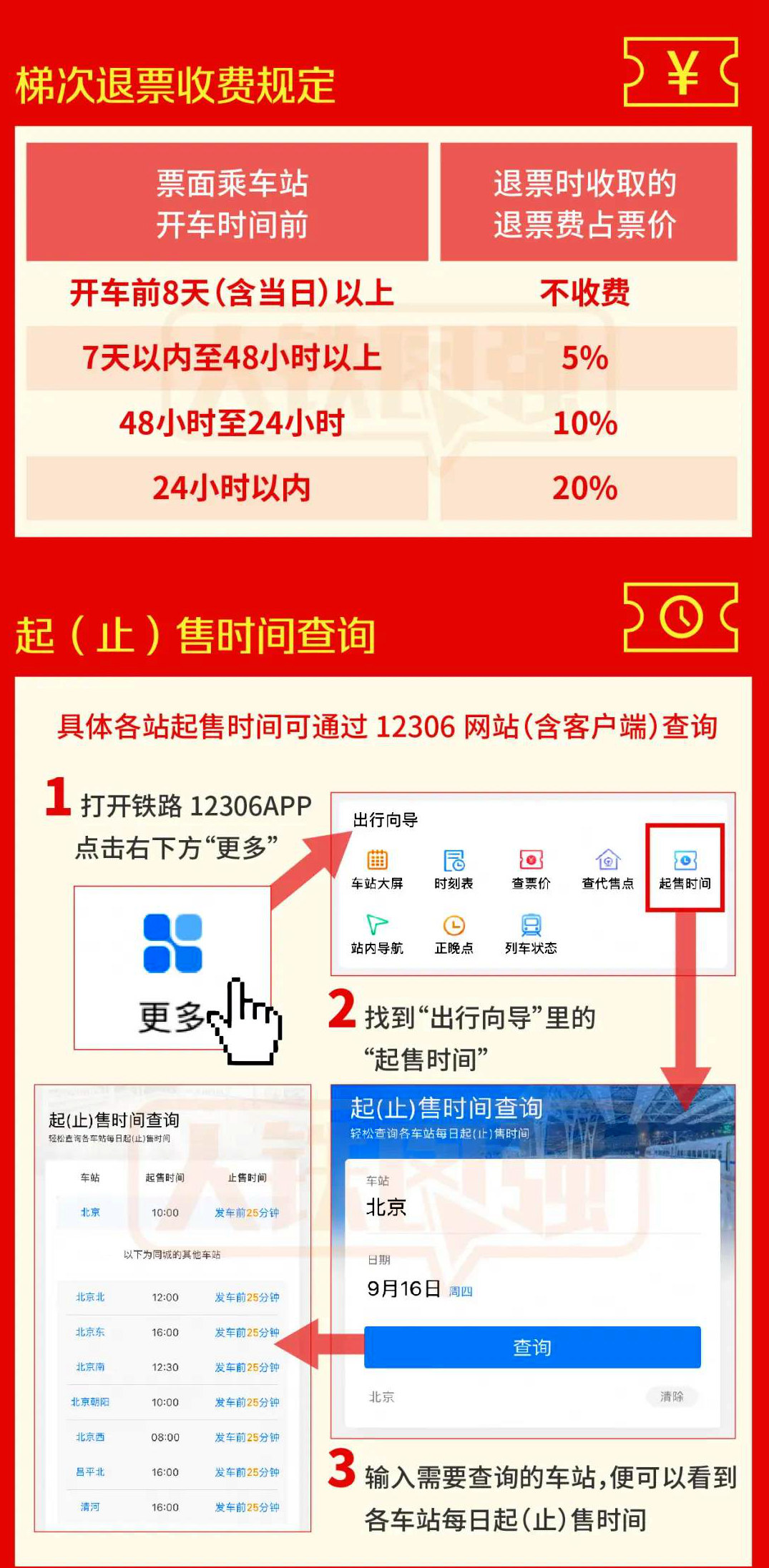 人民網北京9月17日電 (記者王連香)據中國國家鐵路集團消息,今日,十一黃金周火車票正式開售,車票預售期為15天。旅客可通過12306網站、12306手機客戶端或撥打95105105訂票電話,購買國慶節假期第一天的火車票。具體起售時間可通過12306網站(含客戶端)查詢。