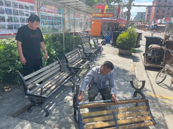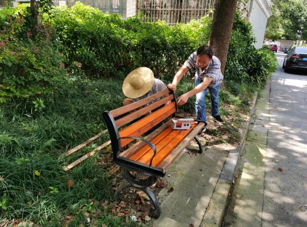 為給居民提供更愜意的休憩環境,近日,共富一居、盛宅一村居委聯合物業分別對小區內的公共座椅逐一進行檢查與維修。