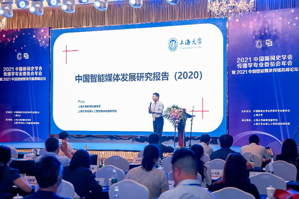 與此同時,《2020-2021全球人工智能媒體發展研究報告》《2020-2021中國人工智能媒體發展研究報告》在會上發布,上海大學新聞傳播學院院長嚴三九教授從戰略、技術、應用、融合、產業與反思等角度,對全球和我國人工智能媒體發展現狀進行了分析與闡述。