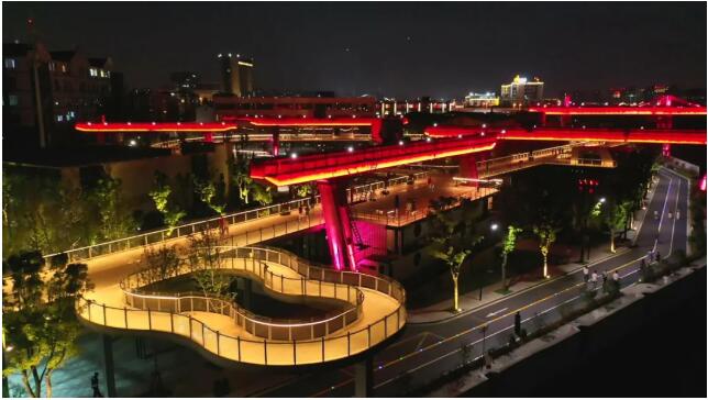 大提琴觀景臺、古琴湖、3D打印折疊橋、音樂噴泉廣場等富有藝術氣息的景觀錯落融于其中,而長度恰好520米的挑空高架廊橋又將塔吊及各景點巧妙連接,與日月星辰同輝,置身其中,這里無疑將成為年輕人傳遞浪漫的最佳表白處。
