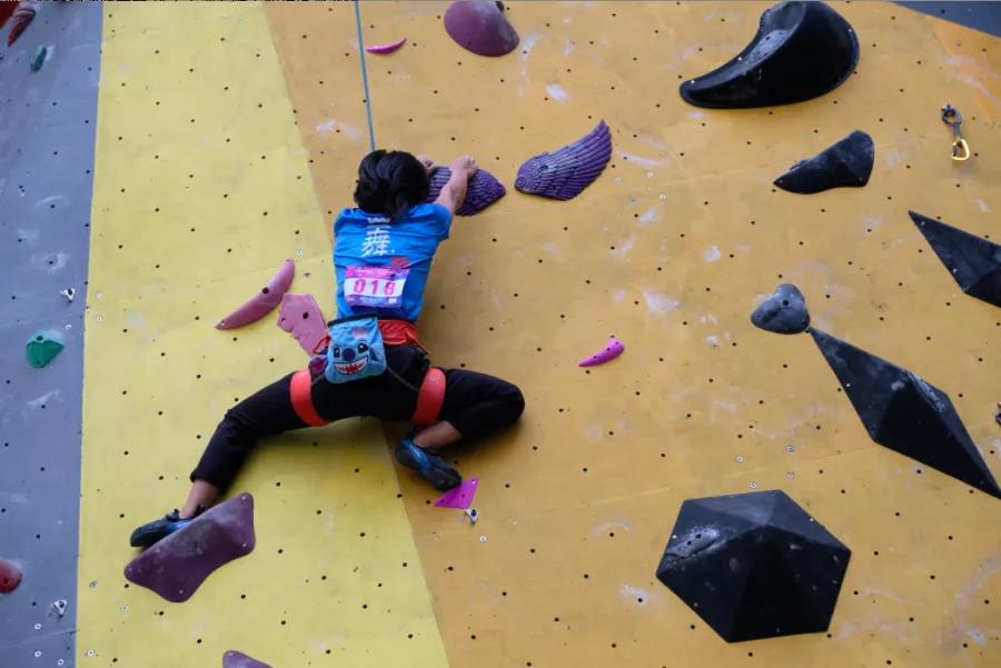 練習攀巖已有四年半的張煒晨此次遺憾未能到達巖頂,“由于到達比賽現場的時間晚了點,熱身時間不夠,所以上場時身體比較僵硬,在倒數第二個點的時候手脫落了,沒有成功到top點!睆垷槼扛嬖V記者,自己第一次接觸攀巖就是在葉巖攀巖館,所以此次回來參加比賽,對于比賽成績并不是很看重,能和志同道合的伙伴們一起共同切磋,也非常享受整個比賽過程。