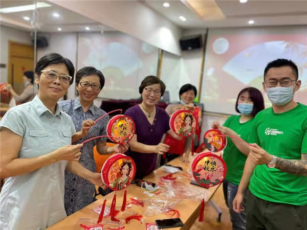 “現在下午來驛站活動安心了,沒有心理負擔了!”周阿姨笑得特別爽朗。臨近“雙減”政策實施后的第一個中秋節,下午3點,虹口區北外灘街道市民驛站里格外熱鬧,做花燈、畫月球燈、做月餅,節日的氛圍特別濃厚。