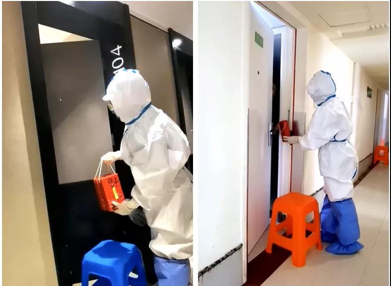 “客人,送您一份中秋禮物!”與駐守的工作人員一樣,在觀察點的“客人”也無法回家與家人團聚。為此,工作人員穿上隔離服,輕輕敲開客人的房門,將禮品送到他們手中,傳達節日的祝福,并耐心詢問他們需求,提醒他們有問題及時在群內提出,將會由專門的人員為他們提供幫助!熬褪亲尨蠹覂刃母械讲还聠,節日里傳遞一份溫暖!庇^察點負責人說。