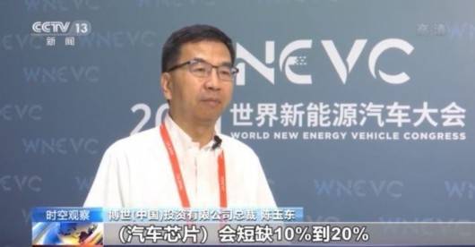 博世(中國)投資有限公司總裁 陳玉東:去年10月份開始,(汽車芯片)會短缺10%到20%。那么到了今年七八月份,短缺度達到了80%以上。