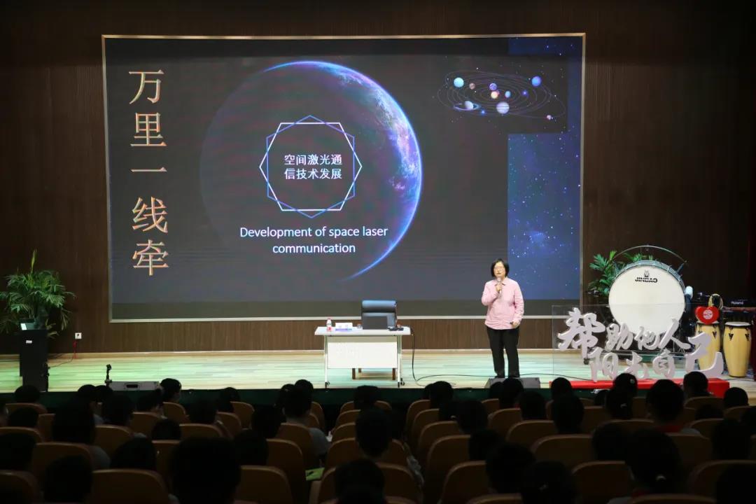 在1個小時左右的時間里,候霞和楊依楓運用三維動畫和視頻,分別圍繞自己擅長的空間激光應用技術和光纖激光技術,向同學們分享了基本概念、技術原理、實際用途和未來發展方向。禮堂內近200名學生聽得十分入迷,不時低頭做筆記,光學研究的“種子”悄然種下。