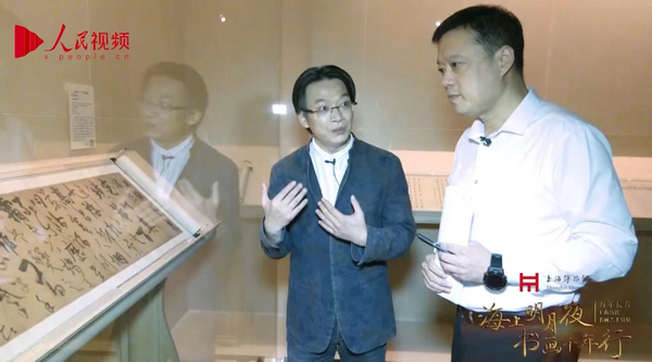 上海博物館書畫研究部主任、研究館員凌利中與主持人海波為觀眾直播講解。