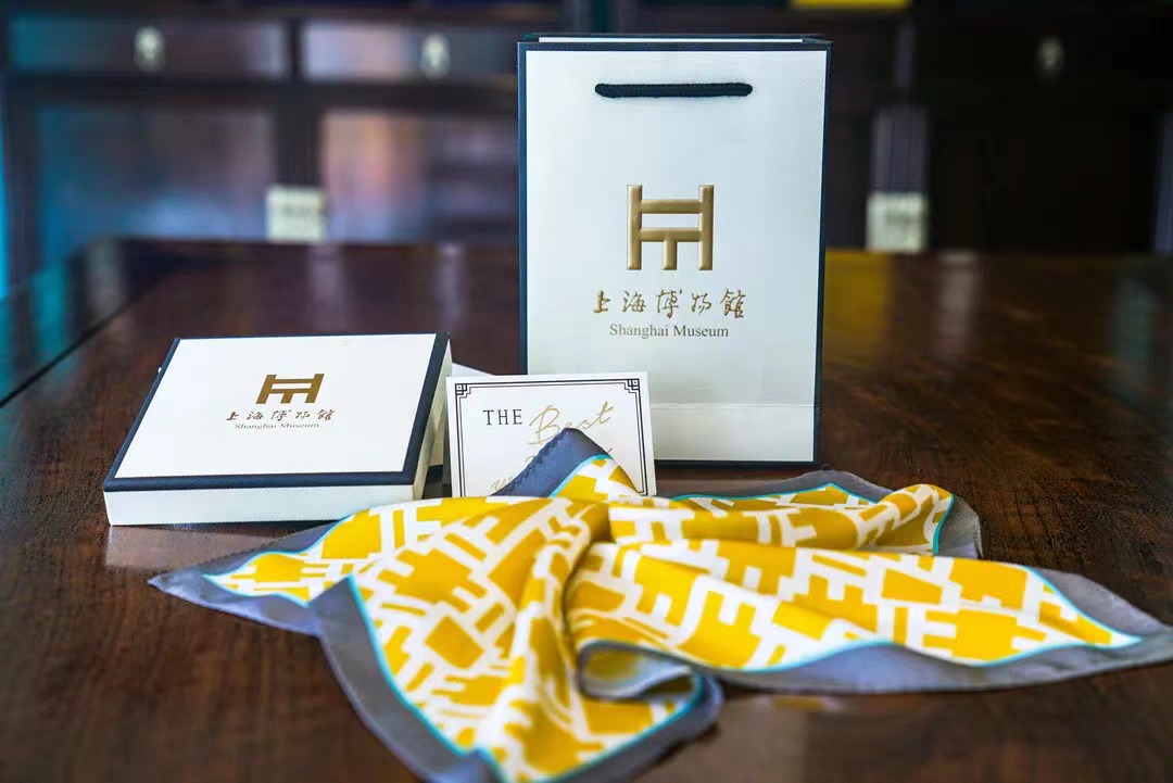 今年年初,經過為期半年在全球范圍的征集,上博新館標問世, 同時精心定制了新館標的徽章、標簽貼,以及量身定制了源于新館標圖案的絲巾和紙拎袋等衍生品。