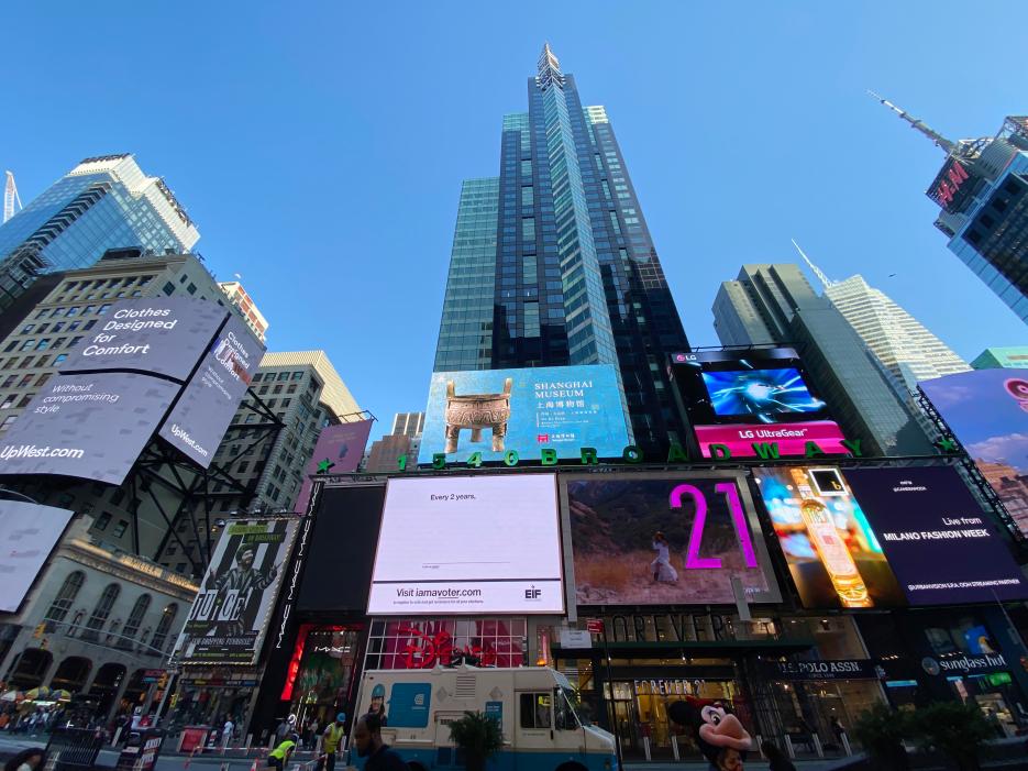 在2020年國慶中秋期間,上海博物館形象海報現身紐約時代廣場大屏,進行為期一周的公益推廣。