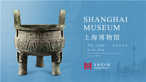 形象海報以象征“海納百川”的藍色為主色調,輔以上海城市地標元素,以“鎮館之寶”西周大克鼎作為代表文物,簡潔鮮明地展示上海博物館作為世界頂級的中國古代藝術博物館的新形象,傳遞向世界講述中國故事、傳播中華優秀傳統文化的美好愿景。