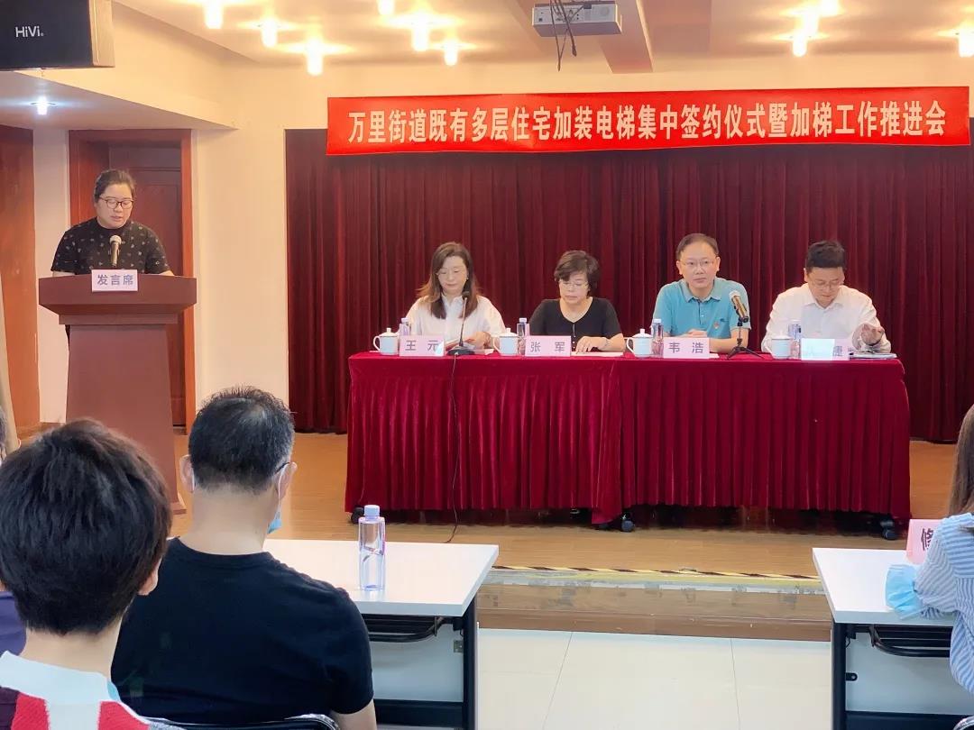 隨著我國進入老齡化社會,老年人居家養老、出行難問題已成為社會關注的熱點問題,“加裝電梯”作為一項民心工程,受到廣大民眾的歡迎。日前,萬里街道召開既有多層住宅加裝電梯集中簽約儀式暨加梯工作推進會,現場完成11臺加裝電梯的合同簽訂。至此,萬里街道已有14臺電梯成功簽約,動工2臺,已完工1臺。