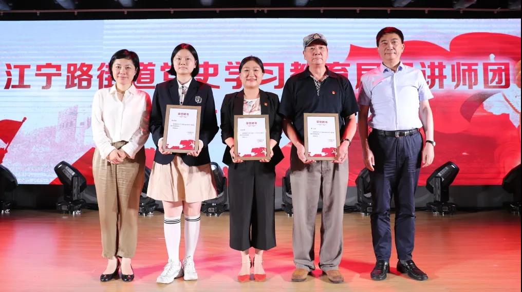 結合黨史學習教育,江寧路街道遴選了一批由社區黨員、機關干部、青少年群體等7人組成的黨史學習教育居民講師團,他們將講述和演繹“百年黨史 閃亮輝煌”“美麗江寧”“紅色故事”“建筑可閱讀”等課題。老黨員董飛翔將寓意著孺子牛精神的手工串珠牛、《紅色靜安》《紅色地圖》等禮物贈予優秀團員青年王嘉韻。