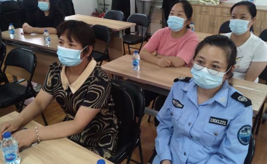 康橋老街黨總支書記劉欣欣(右)在集體學習強國與黨員交流中