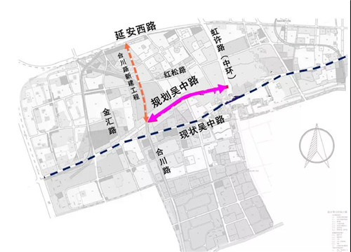 吳中路位置特殊,局部穿越虹橋鎮中心地區,道路兩側均已建成,難以拓寬。緩解吳中路交通壓力,只能尋找另一條東西向的主干道。這條路在吳中路的北側,就是吳美路 。