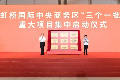 虹橋國際中央商務區今天(24日)舉行儀式,總投資超302億元的一批重大項目集中簽約、總投資290億元的一批重大工程集中開工、一批重要功能性平臺在閔行區主會場集中揭牌。市委副書記、市長龔正宣布重大工程項目集中開工。市人大常委會副主任陳靖和副市長、虹橋國際中央商務區管委會主任宗明共同為功能性平臺揭牌。長寧、青浦、嘉定分會場通過視頻報告開工準備情況,簽約項目、開工項目代表分別發言。