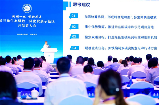 會上,聯盟成員共同發起《示范區綠色低碳發展倡議》。目前,示范區執委會正牽頭研究制定碳達峰中和示范區行動方案,力爭在能源、工業、環境、建筑和交通等重點領域開展低碳零碳技術的應用示范。伍江說,未來,示范區將在“雙碳”方面率先突破。