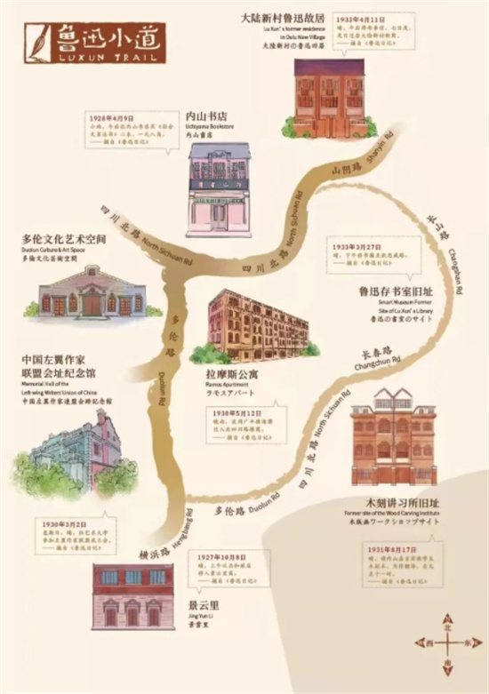 “魯迅小道”同步對原有標識系統進行升級改造,推出“中-英-日”三語的線上瀏覽系統,增設指示性標識,提升“魯迅小道”的路面裝飾性和公眾行走體驗,讓“魯迅小道”能成為感受魯迅先生的城市文化景觀。