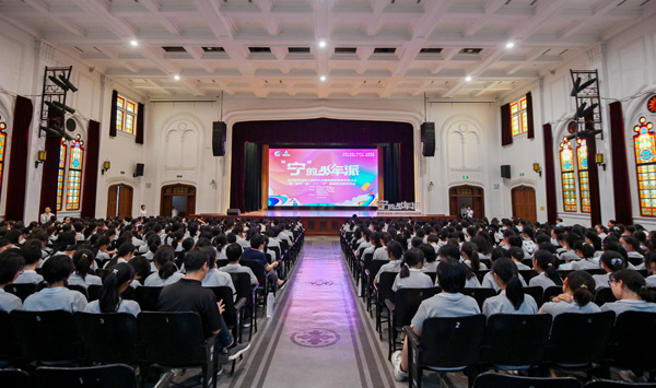 開營儀式結束后,隨即舉辦了“少年·志”—“寧”課堂首場宣講活動,邀請分眾傳媒集團首席信息官、全國“三八紅旗手”陳巖女士,以“風花漫道風雨路——一個職業女性的成長與思考”為題,與500名高中生分享個人成長中的心路歷程,鼓勵中學生們砥礪品格,增長本領,以夢為馬,不負韶華。