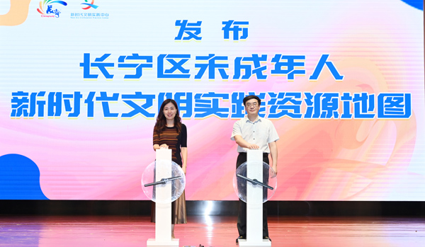 中共長寧區委宣傳部常務副部長、區文明辦主任周薇,長寧區教育工作黨委書記陳新華共同上臺發布了《長寧區未成年人新時代文明實踐資源地圖》。地圖覆蓋區內首批36個新時代文明特色實踐站點、10家上海市學生社區實踐指導站、14處愛國主義教育基地、15所城市學校少年宮,力求在“15分鐘生活圈”的基礎上,構建起未成年人“15分鐘文明實踐活動圈”,讓未成年人更好參與融入上海城市軟實力發展藍圖。