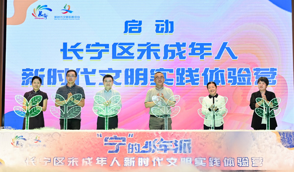 人民網上海9月27日電 今天下午,“‘寧’的少年派”長寧區未成年人新時代文明實踐體驗營開營儀式暨“少年·志”—“寧”課堂首場宣講活動舉行;顒又荚跒檫M一步加強和改進新形勢下未成年人思想道德建設工作,搭建起未成年人成長成才的一體化實踐“大”平臺。上海市文明辦副主任馮芳及區相關部門主要領導和市三女中500名同學參加本次活動。