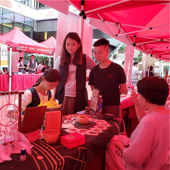 不同于傳統的剪紙藝術,集市上展示的衍紙讓不少市民耳目一新!把芗埰鹪从跉W美,和中國元素相結合,碰撞出了不一樣的效果!蹦醿瀯撌既耸┍硎,可以通過主題定制,在鵝卵石上、樹枝上進行展示,通過手工的方式,讓青少年不再沉迷于電子產品,從而促進他們健康成長。集市上,明長刀、雙手劍、鞭桿等兵器,吸引了有著武俠夢的市民前來體驗,馬臻說,從2016年起工作室開始傳播西北非物質文化遺產,通過外家拳、翻子拳等西北武術,讓更多人了解西北傳統文化。筑錦的中國藝術療愈則是通過人格原型卡和色彩藝術療愈卡,幫助不少對于情感、職場規劃、親子關系迷茫的年輕人進行解壓。