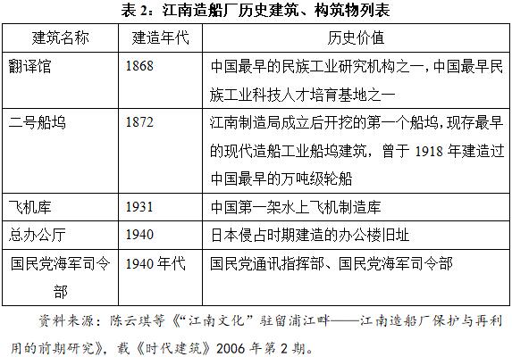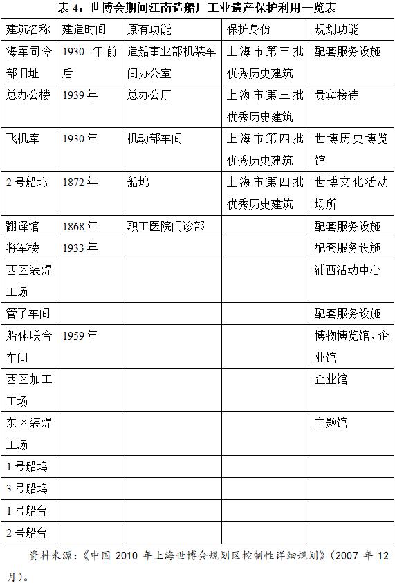 根據規劃,江南造船廠的工業遺產在世博會期間的實際保留情況如下: