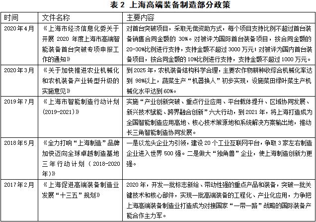 國家層面和上海層面都出臺了一系列的政策文件來推動高端裝備制造業的發展,為上海高端裝備制造業營造了良好的政策環境。