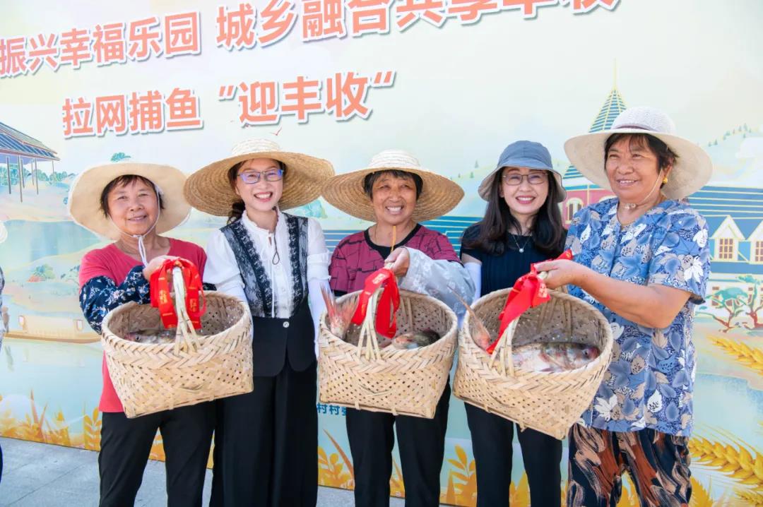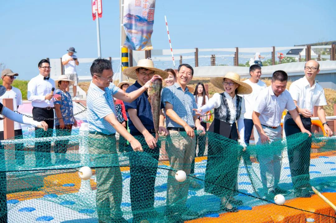 現場,拉網捕魚、水上賽艇,農民共慶豐收時節,共話美好生活,到處都是一片豐收的景象。