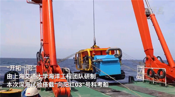 近期,由上海交通大學(以下簡稱:“上海交大”)海洋工程團隊研制的深海重載作業采礦車“開拓一號”在我國南海西沙海域成功完成1300米深海試驗!伴_拓一號”深海采礦車搭載于“向陽紅03”號科考船,在不同海區分別布放至108米、968米、1305米等多個水深的海底,不需要任何人工操控,“開拓一號”能根據預先設置好的程序,在海底一會兒走出“S”形,一會兒走出“J”形。除了在海底自主行走的能力,它的業務能力也非同一般:能自主感知周邊的采礦環境。