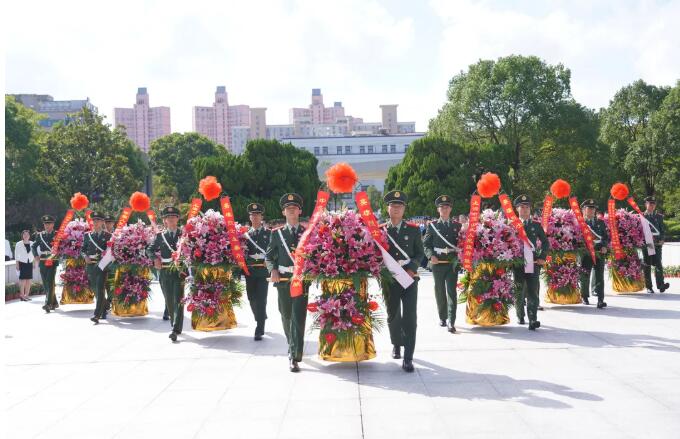 區委書記陳杰,區委副書記、區長高奕奕,區人大常委會主任李萍,區政協黨組書記凌惠康等區四套班子領導與社會各界人士代表共同緬懷先烈、致敬英雄,F場全體人員脫帽肅立,向烈士默哀。