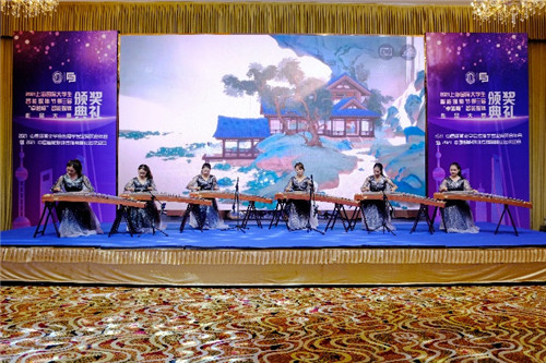 上海大學明珠箏團和新聞傳播學院師生在典禮上帶來精彩的古箏演奏、歌舞表演,展現了當代大學生的風采,將典禮氛圍推向高潮。