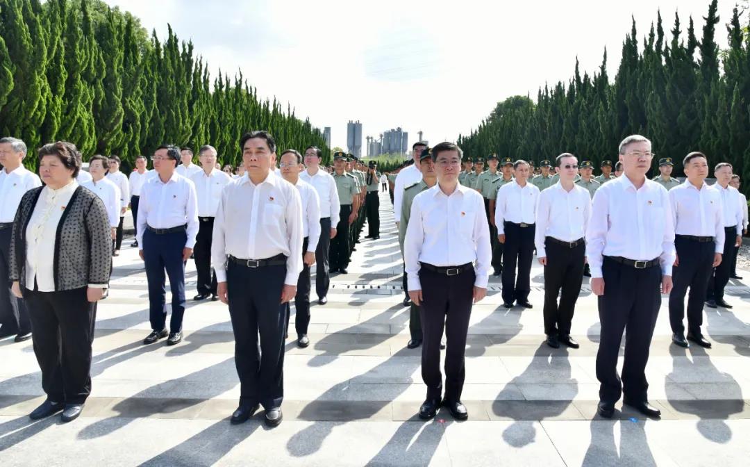 區委書記劉健,區委副書記、代理區長李澤龍,區人大常委會主任杜治中,區人大常委會黨組書記沈華棣,區政協主席王美新,區政協黨組書記劉豫峰,區委副書記信亞東等區領導同各界代表一起向人民英雄敬獻花籃,共同緬懷革命先烈,弘揚英雄精神。