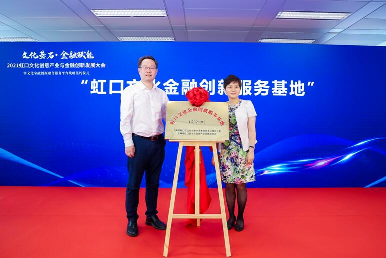 為推動市、區文創和金融創新產業優質資源匯聚,會上,上海市委宣傳部文化改革發展辦公室主任劉海英,虹口區委宣傳部副部長、區文旅局黨組書記、區文創辦主任陸文共同揭牌成立“虹口文化金融創新服務基地”。