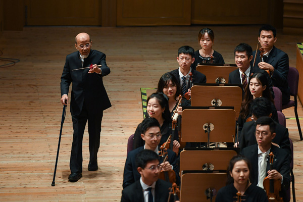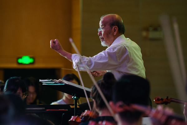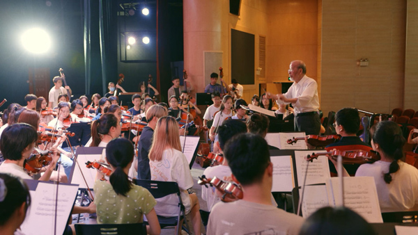 他上了臺,舞動手中的指揮棒,時而剛如山巖,時而柔若岸柳,他在年輕人中間,神采奕奕,青春煥發,他們的每一個節拍、每一個音符,都逃不過他的耳朵。他會停下來,讓學生樂手走到他的身邊,“來,看我來一遍!”當演奏完畢,他會和學生們一起開心地鼓掌。