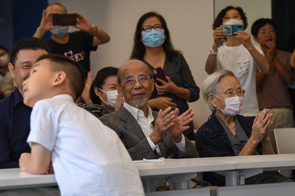 這個夏天,曹鵬牽掛的“星星的孩子”又迎來了新的收獲和希望。8月3日上午,江寧街道社區黨建服務中心的6樓,成了孩子們的快樂天堂。小提琴重奏、齊奏,黑管、長笛、大號表演,唱歌、朗誦、舞蹈,還有厲害的珠心算——“愛課堂”2021暑期班結業典禮,見證著一群特殊的自閉癥孩子的成長歷程,也見證了曹爺爺一家多年的執著付出,這深深的愛,如同奔流不息的海洋,承載起一葉葉孤獨的扁舟,打開人生的航標,駛向光明的未來。
