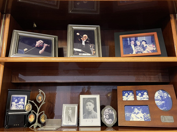 下午3點,一場滂沱大雨過后,夏日的陽光重新照射出來。來到曹鵬家,只見門上有一塊“光榮之家”的銅牌?蛷d干凈簡樸,除了沙發茶幾書架,剛好能安放一架鋼琴。墻上有曹鵬指揮帥氣的肖像畫,書架里是一家人溫馨的照片,曹鵬和惠玲的結婚照,2位女兒曹小夏和夏小曹小時候的照片,當年的全家!殧禋q月,因愛溫存。