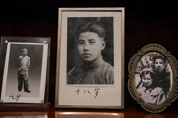 午休后的曹鵬,精神煥發地坐在沙發上,拿起9歲時的照片回憶崢嶸歲月!拔沂墙K江陰人,9歲小學時就在江陰抗日歌曲比賽上拿了第一,可以說是從小唱著抗日歌曲長大的!1944年曹鵬參加新四軍,“我原來不叫曹鵬,到了游擊根據地以后,背包還沒放下來,一張表格交上來說立即改名!彼肫痣x家里時,飽受苦難的母親對他說的話——去參加革命就要像岳飛一樣精忠報國!八晕夷X子里蹦出來一個曹鵬——鵬程萬里,我就借著革命的東風一直往前走!”